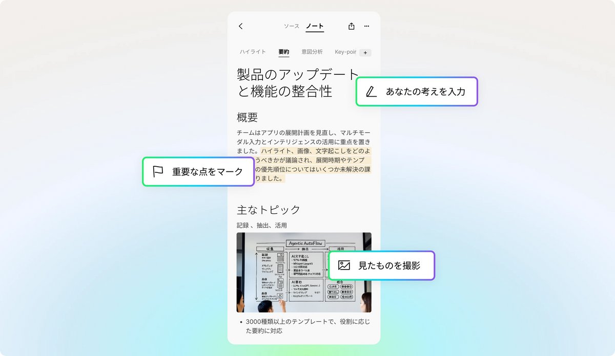「話す」「聞く」「見る」「考える」、その全てを記録