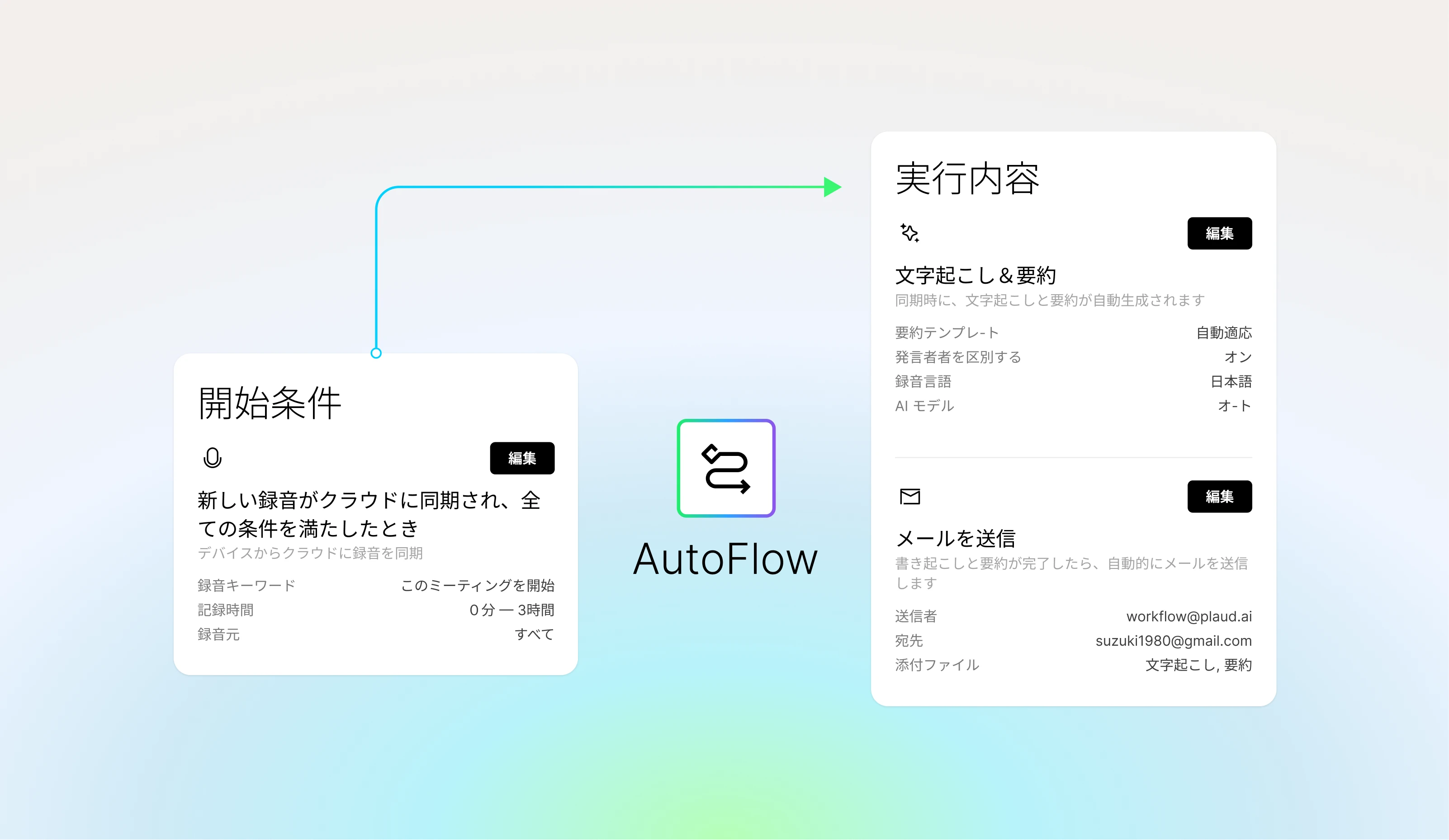あらかじめ設定したメールアドレスへ、文字起こしと要約を自動送信。