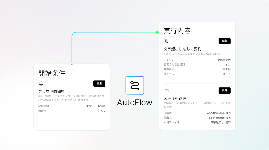あらかじめ設定したメールアドレスへ、文字起こしと要約を自動送信。
