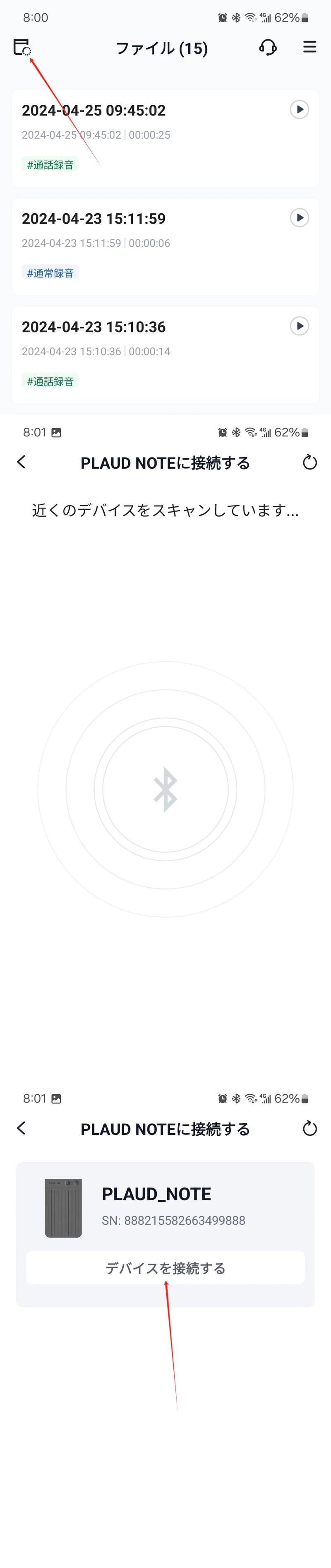 - PLAUD NOTEがスマホのBluetooth接続範囲内にあることを確認してください。