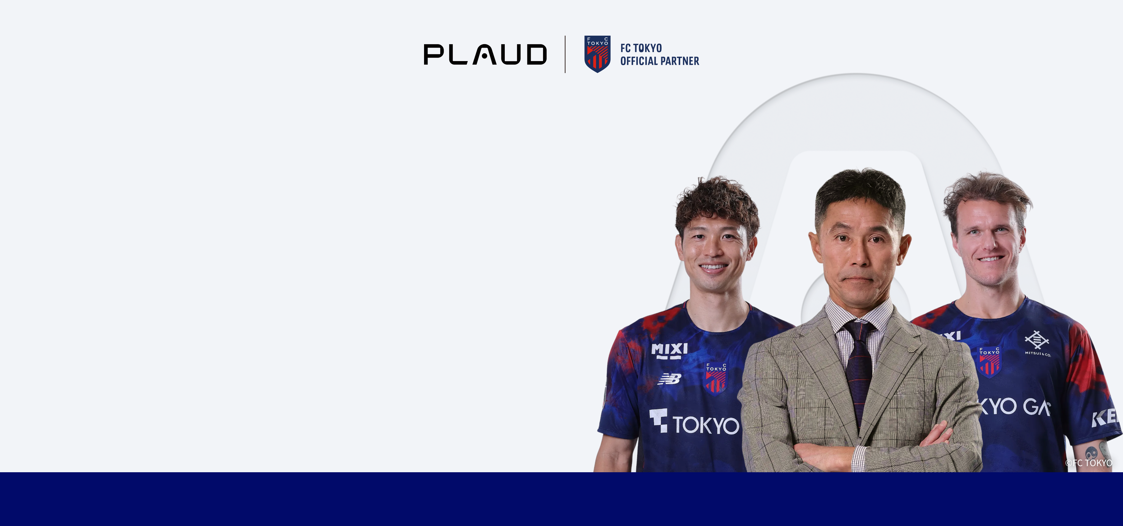Plaud(プラウド)は、世界をリードするAIボイスレコーダーシリーズを展開するブランドとして、記憶・整理・伝達という人間の本質的な知的行動をAlの力で支援しています。東京を日本法人の拠点とするPLAUD株式会社は、同じく東京に拠点を置くプ口サッカ一クラブ『FC東京』のオフィシャルパートナ一として活動を応援しています。