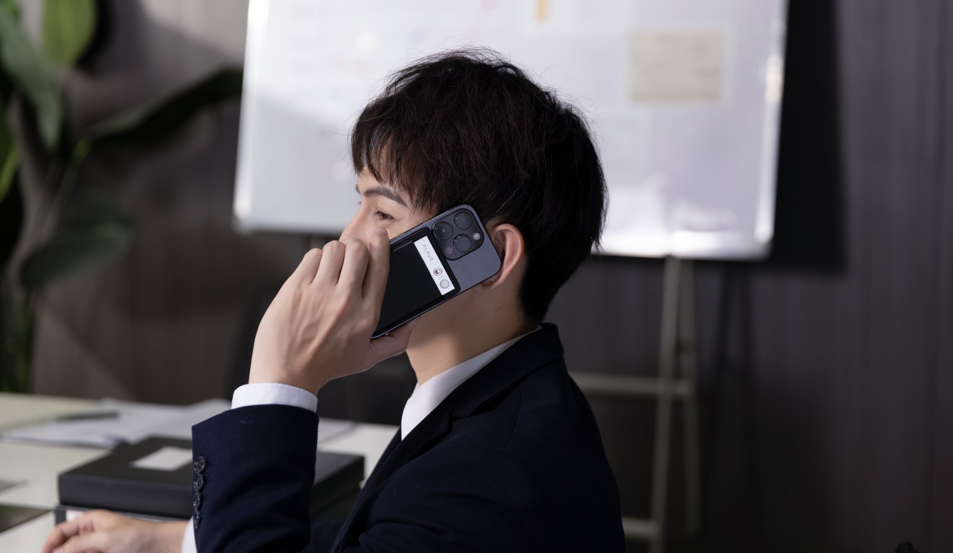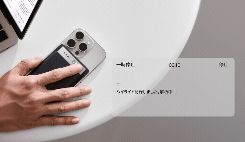 MagSafe対応ケースに挿入して、スマートフォンの裏面に装着することにより、通話を録音できます。