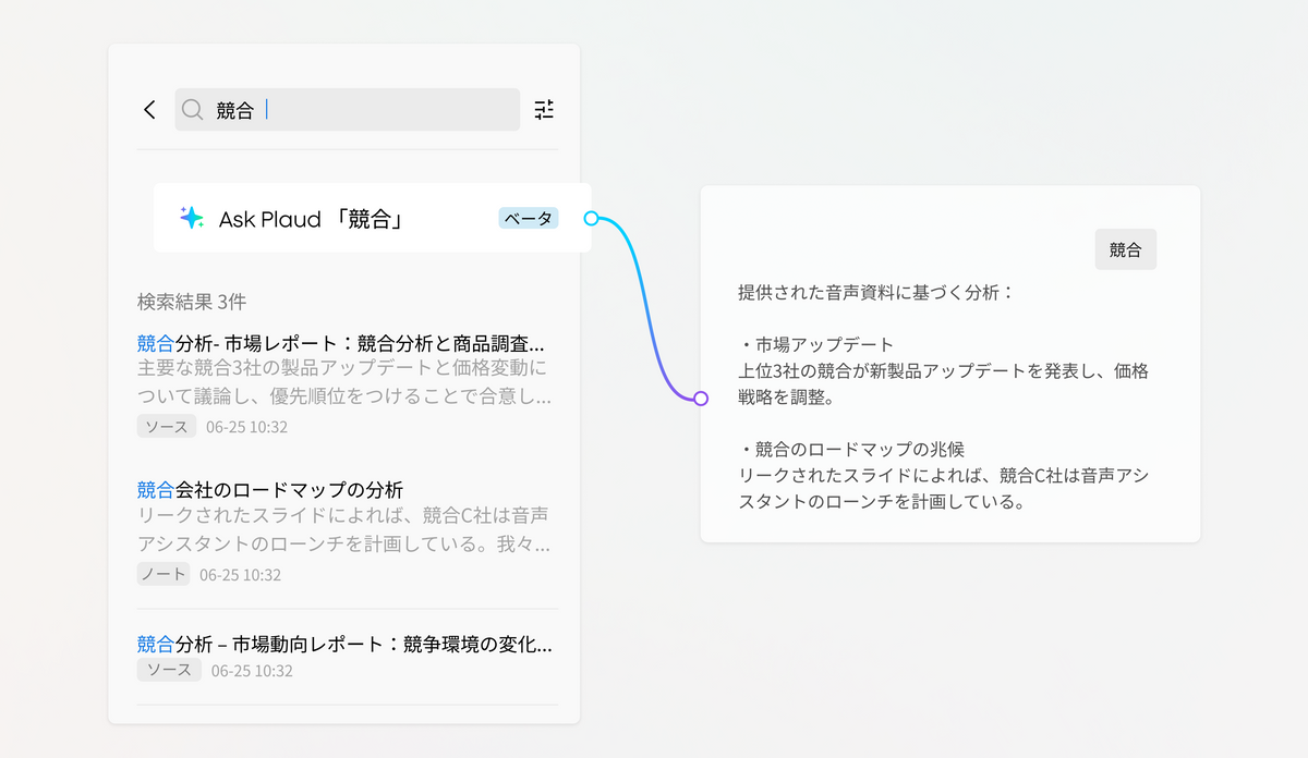 すべての回答は音声ソースに基づき、その音源まで遡って確認できるため、Ask Plaudは常に信頼性が高く、正確です。ハルシネーション(誤情報)の心配もありません。